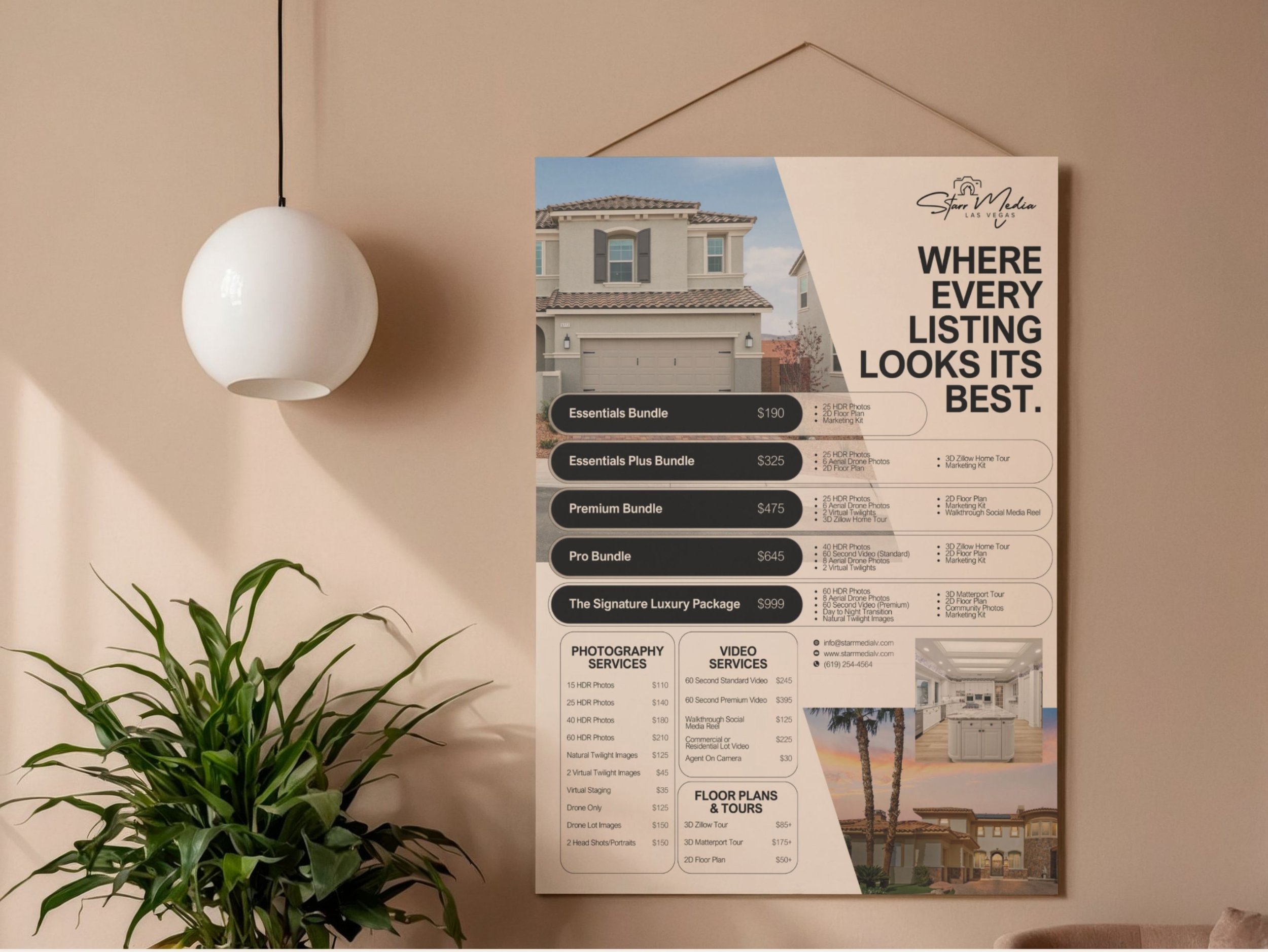 At Starr Media LV, we provide professional real estate photography services in the Las Vegas area, including interior, exterior, twilight, drone imagery, cinematic videography and social media reels.